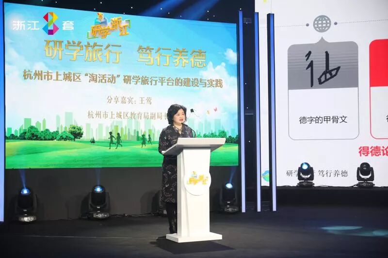 △分享嘉宾:杭州市上城区教育局副局长王莺,分享主题为《研学旅行 笃行养德——上城区“淘活动”研学旅行平台的建设与实践》