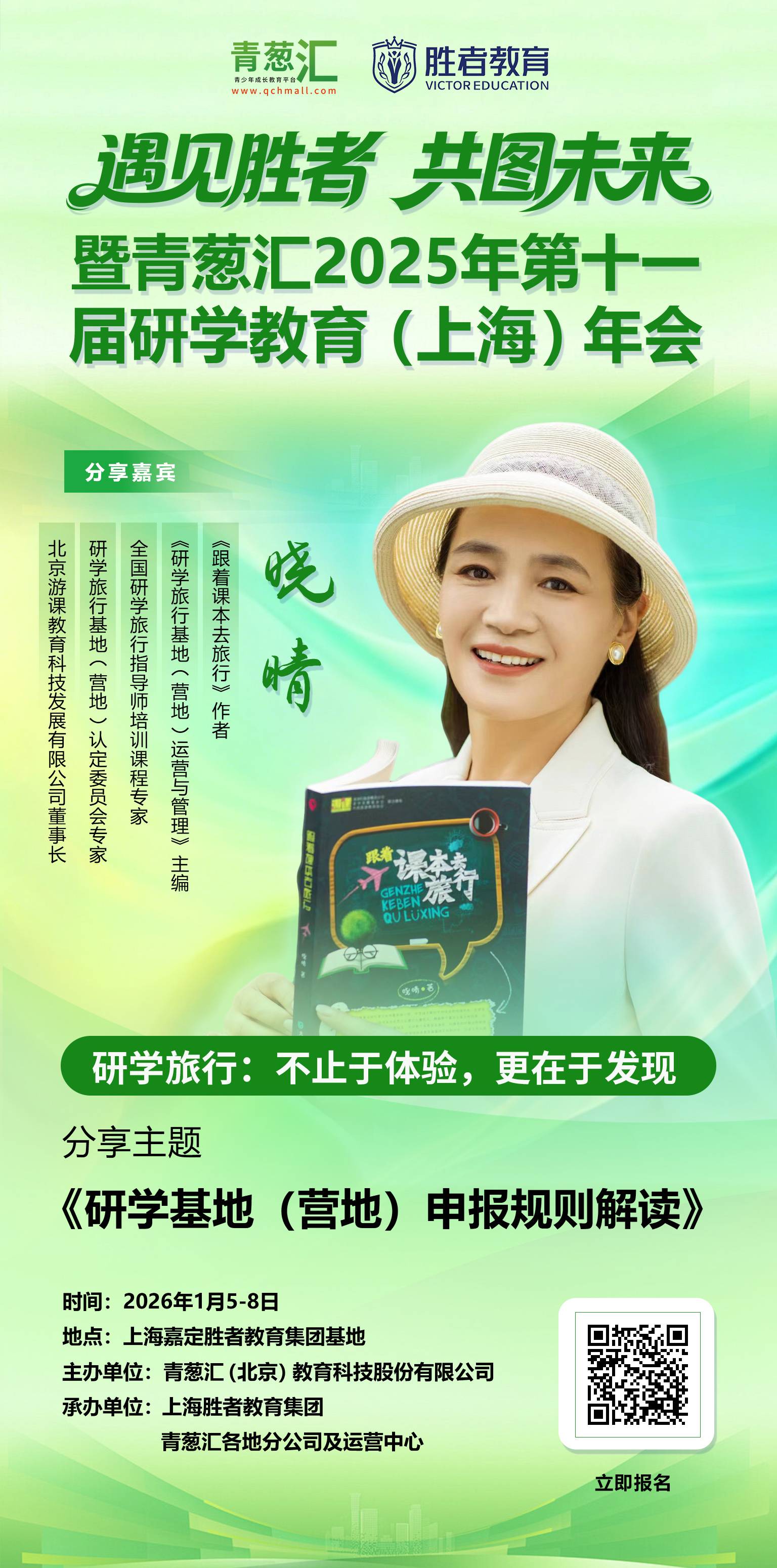 无论您是寻找优质的各地研学产品,还是希望推广自身的特色项目,本次年会都将为您精准对接全国研学精英与实战伙伴,共同探索合作新模式,共绘未来发展蓝图。