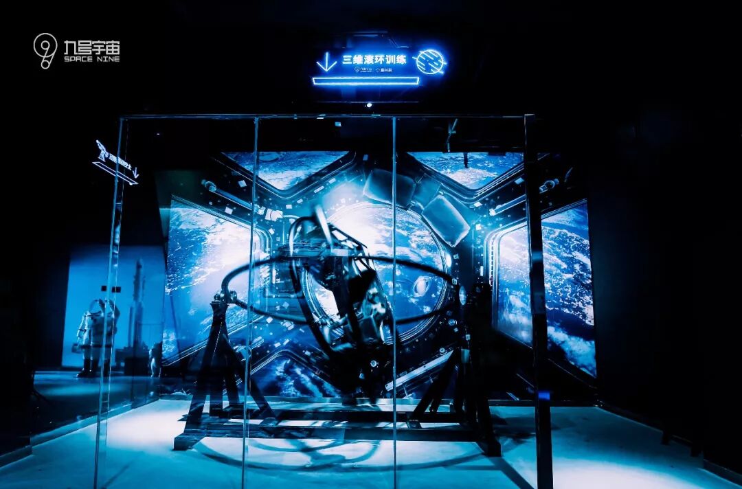 以载人航天体能训练器材为原型制作的三维滚环,可以考验人在天旋地转时操作飞船的能力,如果对自己平衡能力有足够的自信,可以挑战一下!假如平衡力不好的小伙伴,还是建议不要尝试。反正霖爸体验完之后感觉还挺刺激的,玩了还想玩!