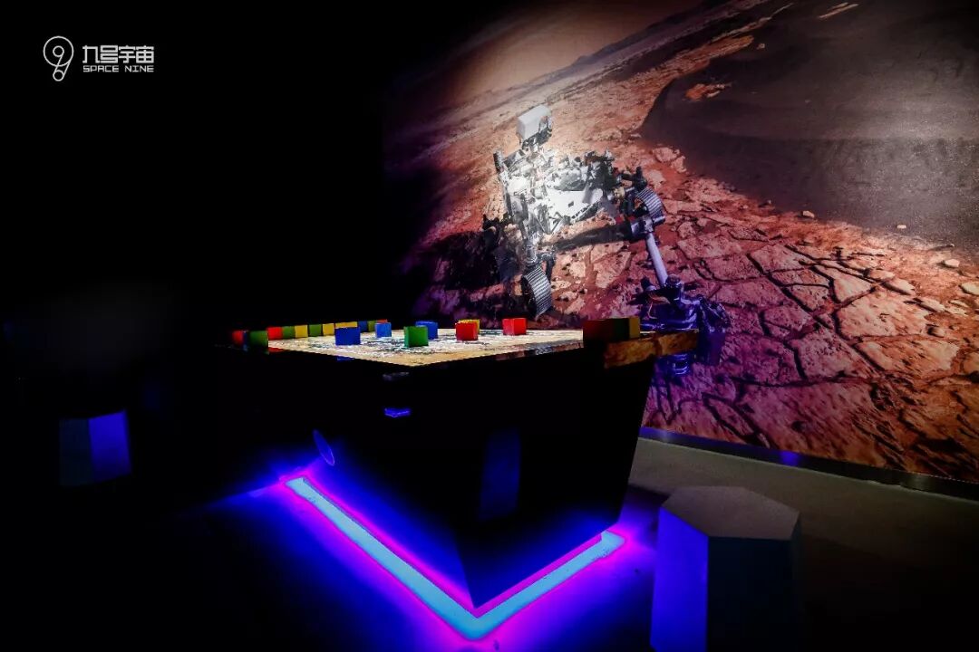 九号宇宙共有三层,二层的体验区,大家可以体验到神奇的星际旅行,跟随我们的星际探险家小九一起,乘坐太空梭,从2300年的阿尔法星球回应母星地球的召唤,一路穿越,回到地球母亲的怀抱,既能领略宇宙的浩瀚,又能了解星际的奥秘,激发每一个体验者的无限好奇。