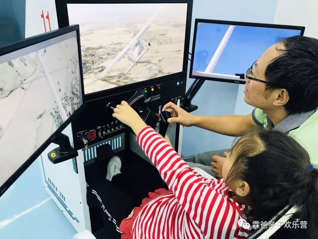专门设计的研学教室和太空创客实验室也可作为师生们开展研学活动的独立课堂,模拟开飞机,在九号宇宙一不小心实现了霖爸的航空梦。